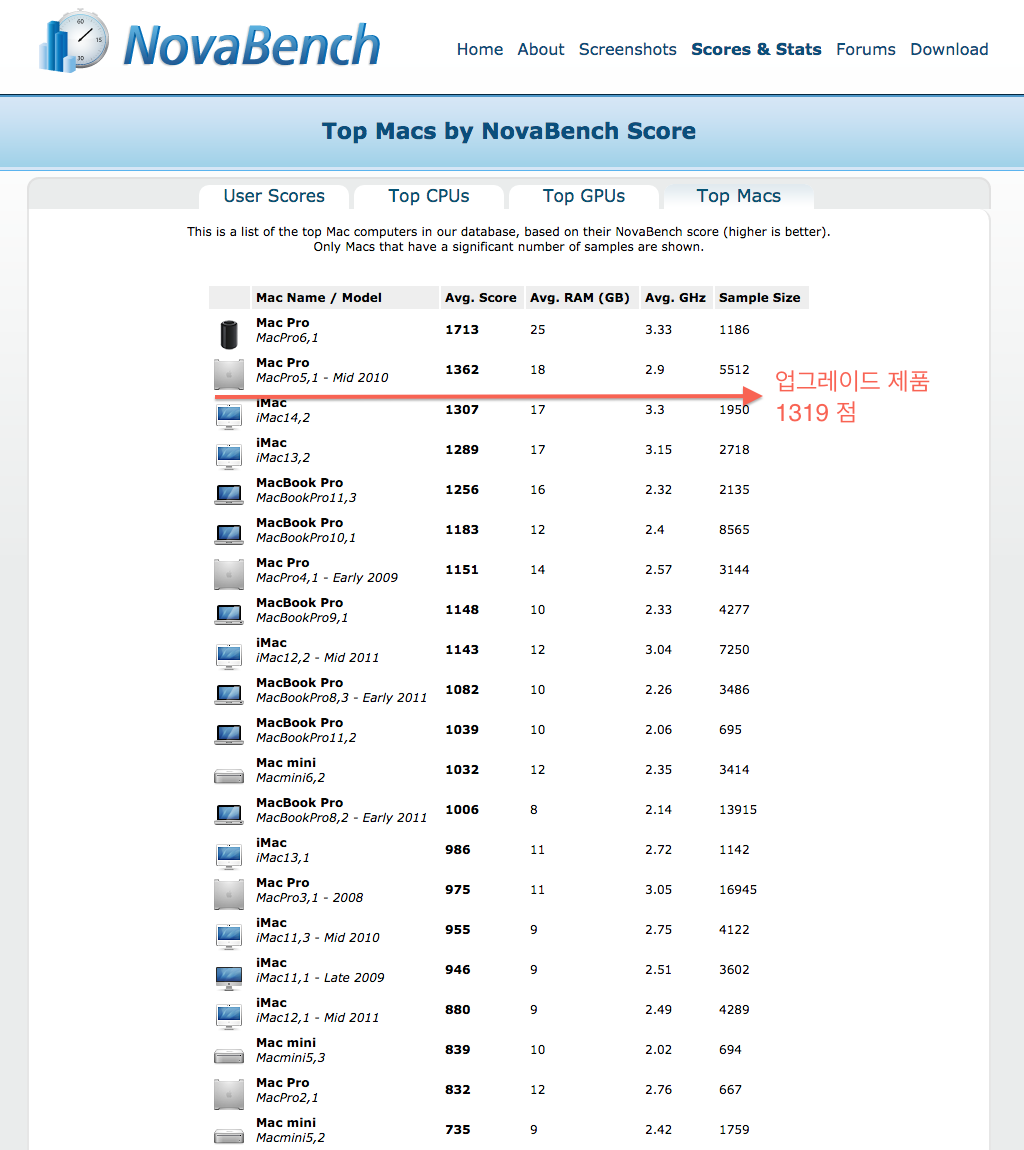 2013년 27인치 아이맥 ME088XX/A 보다 점수가 높게 나왔습니다.