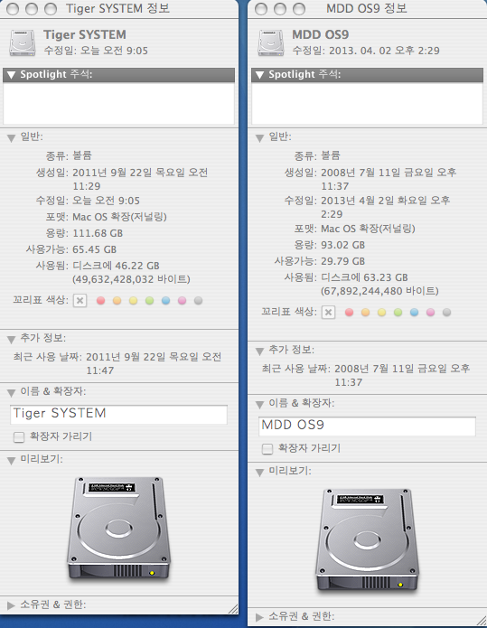 Mac OS X 10.4.11 과 9.22 개별하드에 별도로 셋팅되어