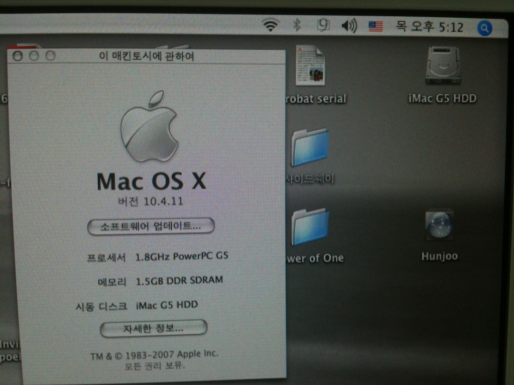 상태a급 imac G5 아이맥 20인치 흰색 업그레이드된 제품 팝니다.