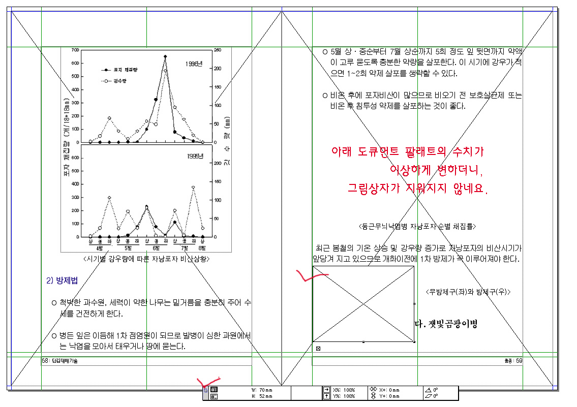 그림상자를 다른 도큐먼트에서 가져왔는데, 수치 팔레트가 이상하더니