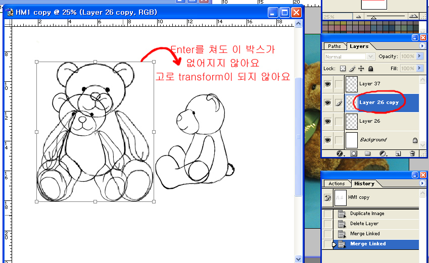 트렌스폼 하면 왜 자꾸 복사 레이어가 생길까요?