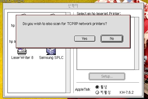 지금 나오는 메시지는 프린터 드라이버(삼성 혹은 HP) 설치시에 TCP/IP 방식의 사용 여부를 명확하게 정하지 않아 나타나는 증상이 아닐까 합니다.