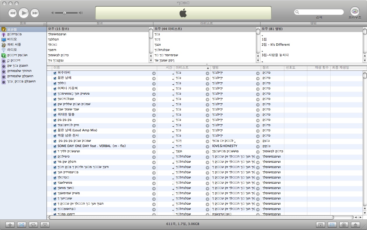 iTunes 쓰실 때 대부분 한글이 깨져 보인다고들 하시던데,,,;