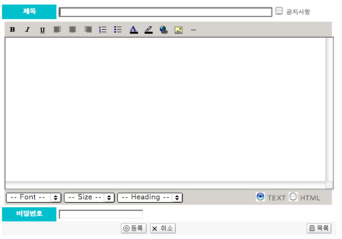 제목은 적어지는데 저 멀티형식으로 된 게시판 안에는 커서도