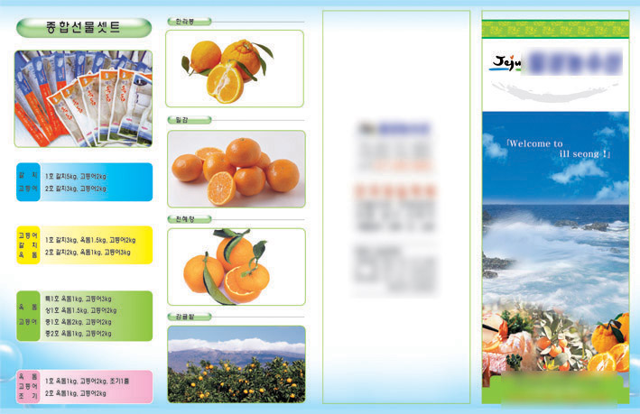 전에,,수산이였던가..그것에 비하면 서체도 다양했졌고... 디자인도 좀더 채워진거 같네요.... 표지는 바다와 귤을 합성하실려고 한거같은데 블러는 주신거 같지만 단절되보입니다... 좀더 자연스럽게 하셨으면 어쩔까 싶네요... 한걸음한걸음!!! 화이팅하십시요!