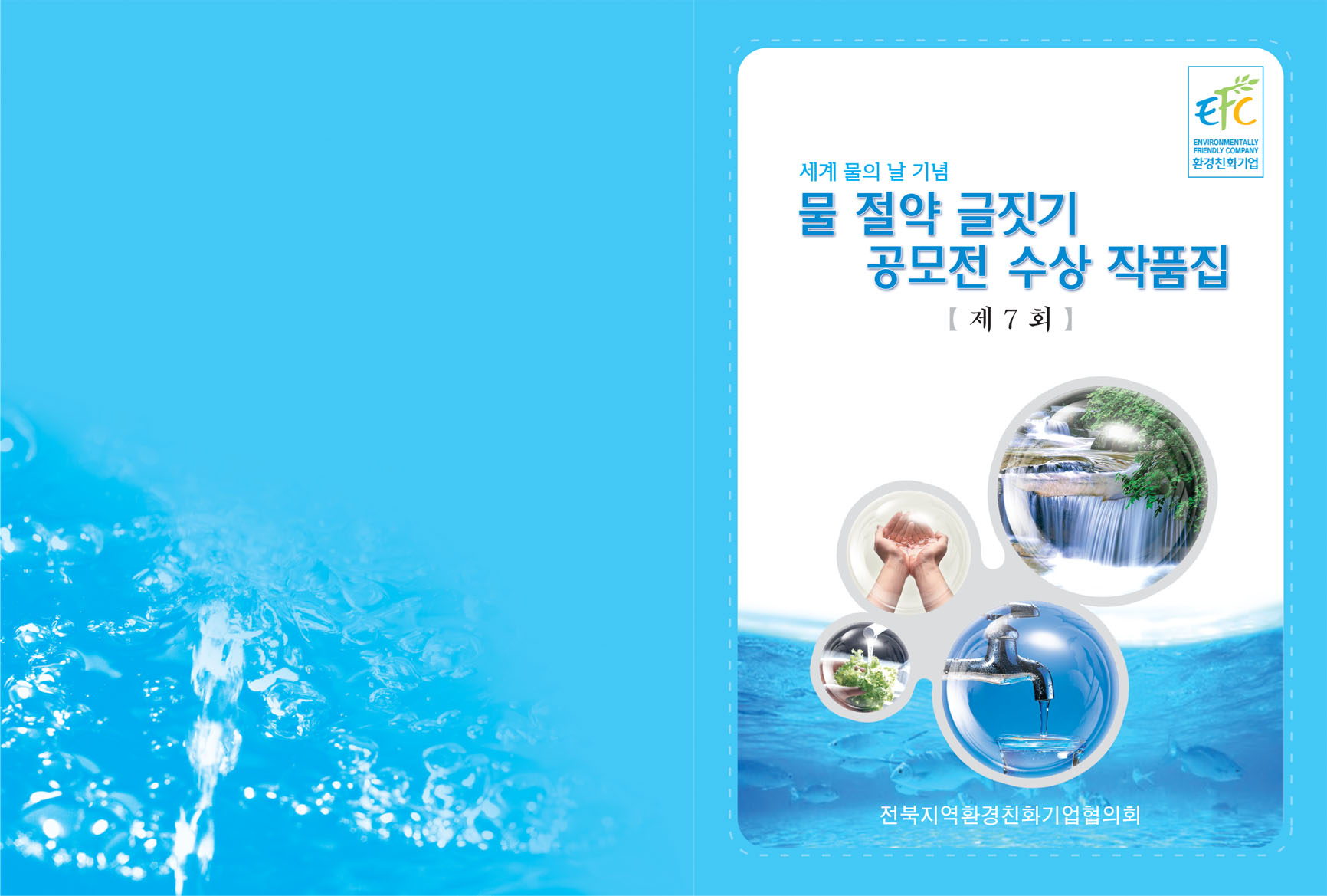 캐릭터가 있으면 좋겠지만.. 뒷면 중앙에 앞표지에쓰인 회색동그라미에 손바닥사진을 그대로 써도좋고 그 바로 아래 전북지역환경친화기업협의회를 작게 넣어주시면 훨씬더 신경쓴듯한 디자인이 될듯해요.^^ 표지하단 전북지역.. 글씨자간은 붙여주는게좋을꺼같고. 제7회 검정명조체로들어간글씨가 겉도는느낌이들어요. 회색괄호와 검정글씨를 굳이 따로가지말고.. [제7회] 부분을 윤고딕 230정도에 블랙70%정도면어떨까싶은 생각..^^ 갠적인 생각이니, 참고만하세요..ㅎㅎ;; emoticon_083