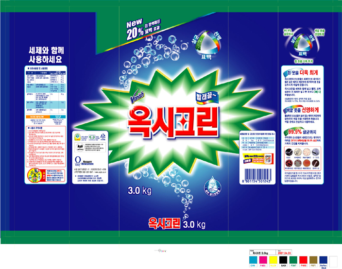 눈에 확띄니 깔끔하고 이쁘네요 한층 업그레이드된 옥시~ 근데 요즘 세탁제품마다 색깔옷선명 컨셉은 비슷비숫하군요