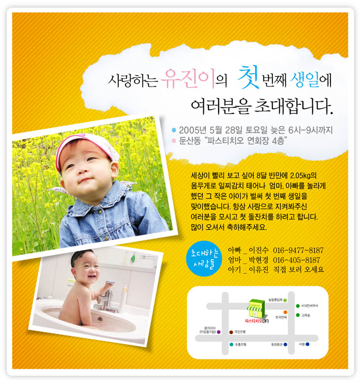 친구 딸내미 돌 초대장이에여,