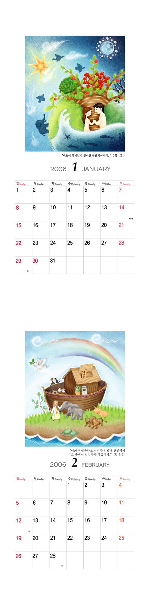 교회서 성도들께 나눠드리는 캘린더예요.
