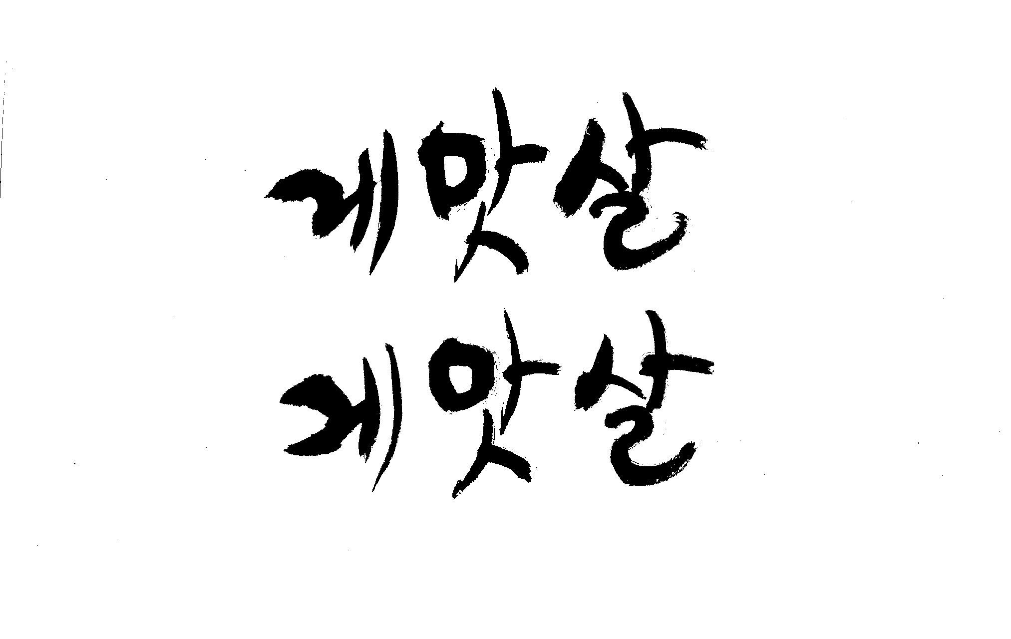 캘리 부탁드립니다. 김철호 일반 0 6377 2009.01.30 09:49 > > > > > 제가 이리저리 써보기도 했으나 너무 이상해서 도움을 받고자 합니다. > > 단어는 '게맛살' 입니다. 패키지디자인에 사용할 타이틀입니다. > > 급한사항이니 부탁드립니다. 감사합니다. ^^ > > >