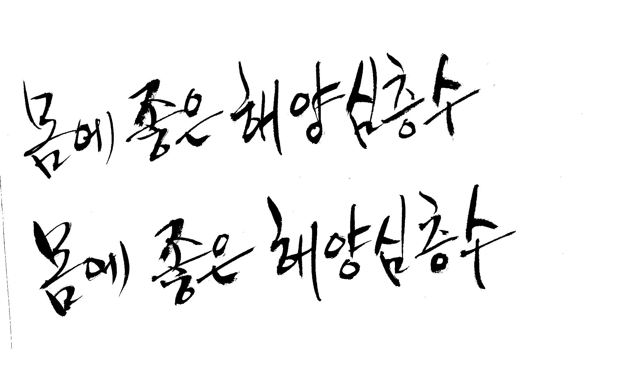 캘리 부탁드려도 될지~ 김철호 일반 0 6678 2009.01.20 00:53 > > > > > 안녕하세요~ > > 항상 좋은 정보 많이 보고 가고 있습니다. > > 감사합니다~ > > 캘리 좀 부탁드려도 될지 모르겠어요. > > ' 몸에좋은(愛), 해양심층수' > > 바쁘신데 부탁드려요~ > > 눈길에 안전운전하시구요~ ^^ > > >