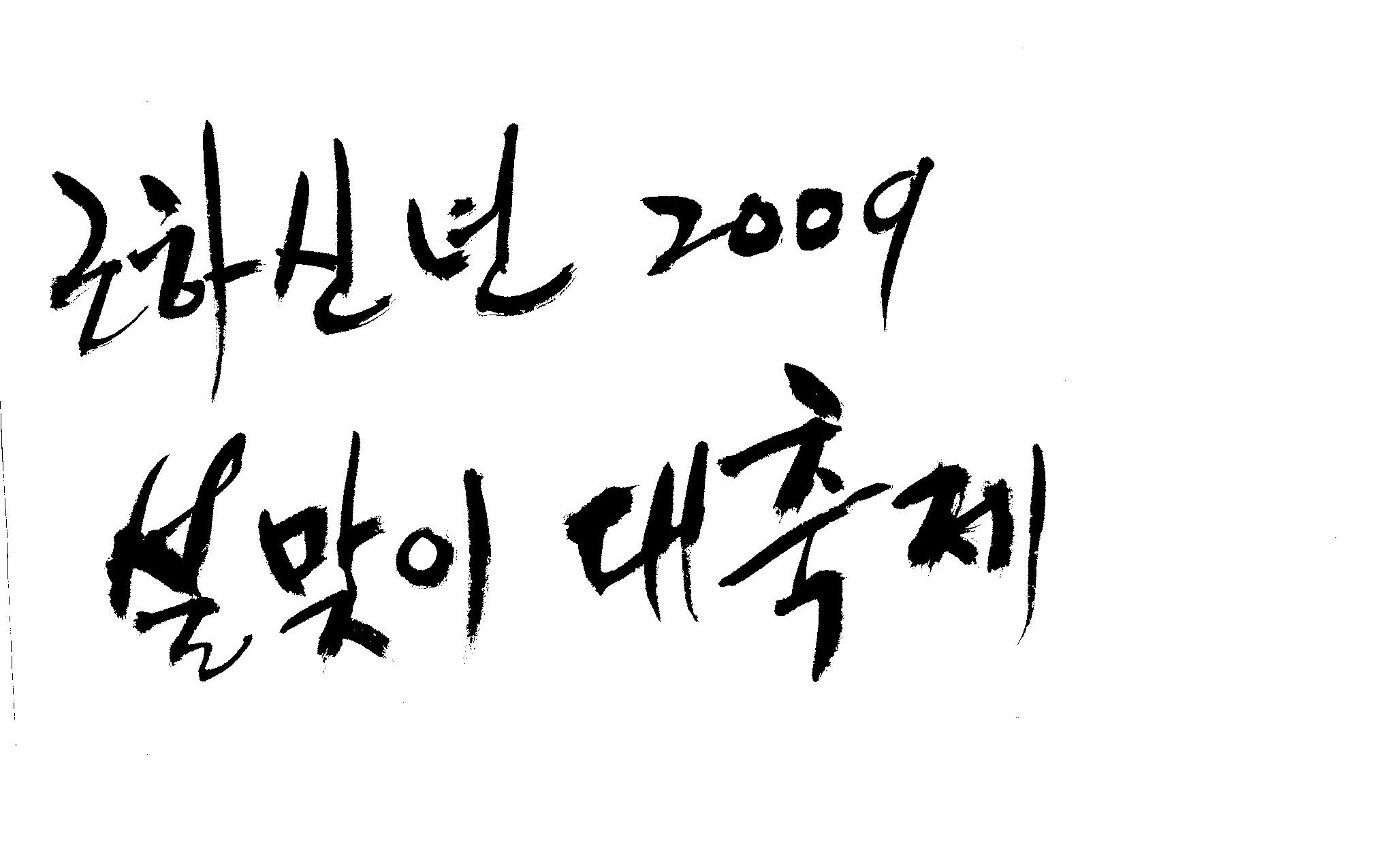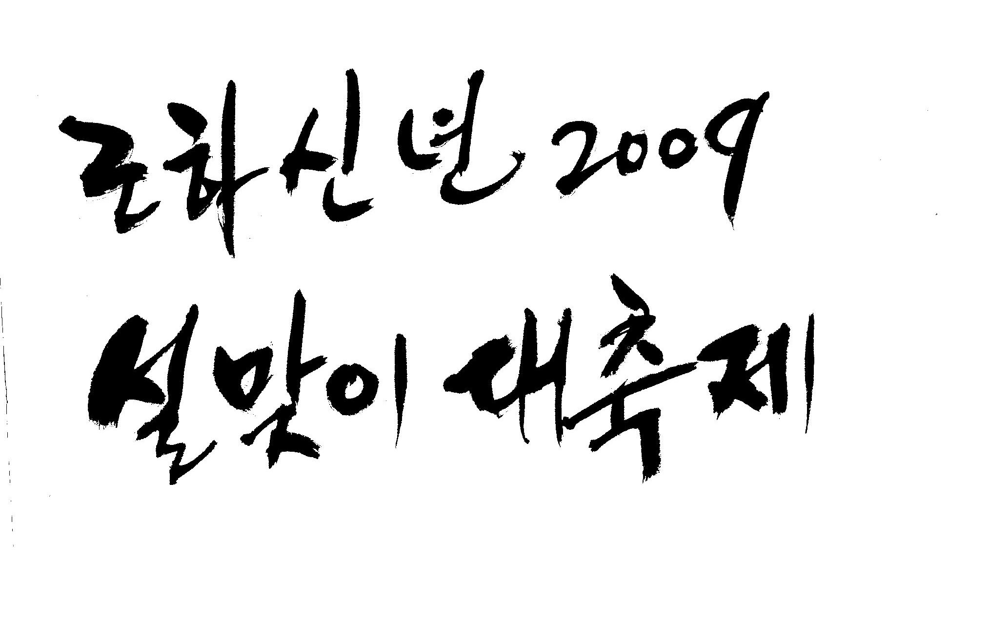 근하신년 2009 설맞이대축제 캘리 부탁드려요. 김철호 일반 3 16600 2009.01.14 10:45 > > A3 전단지 타이틀로 쓰려고 하는데요. > > ''근하신년 2009 설맞이대축제'' 캘리 부탁드립니다. > > 많은도움이 되주셔서 감사합니다. > > 유용하게 쓰세요..