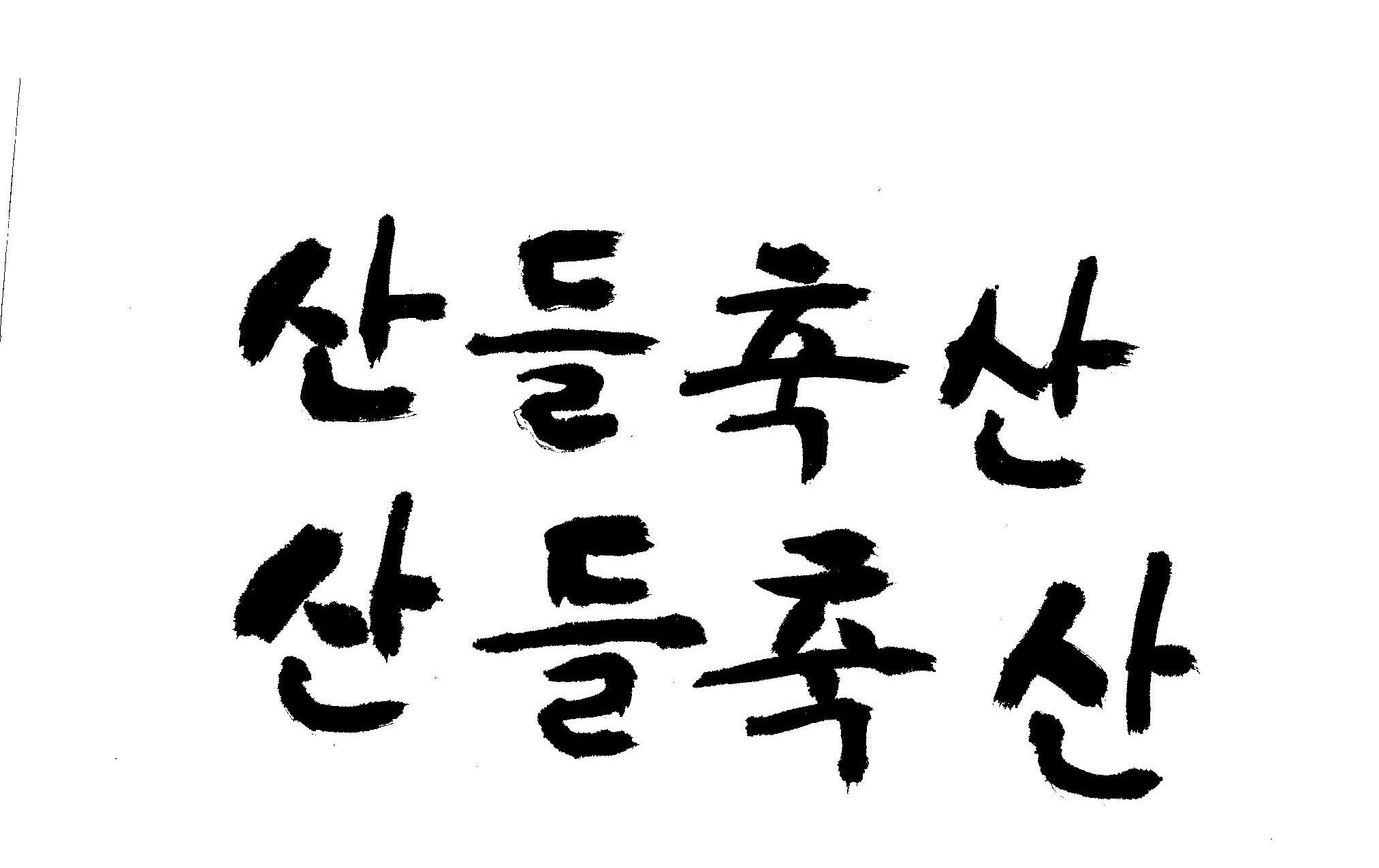 [급]붓서체로 "산들축산"글 캘리부탁드립니다. 김철호 일반 0 8246 2009.02.16 14:48 > > > > > > > > > "산들축산" 붓으로 쓴것처럼 캘리 부탁드립니다. 유려체 말구요 절말 급합니다. 부탁드립니다 참고로 JPG올립니다. 이와 비슷한거요... > > > > > >